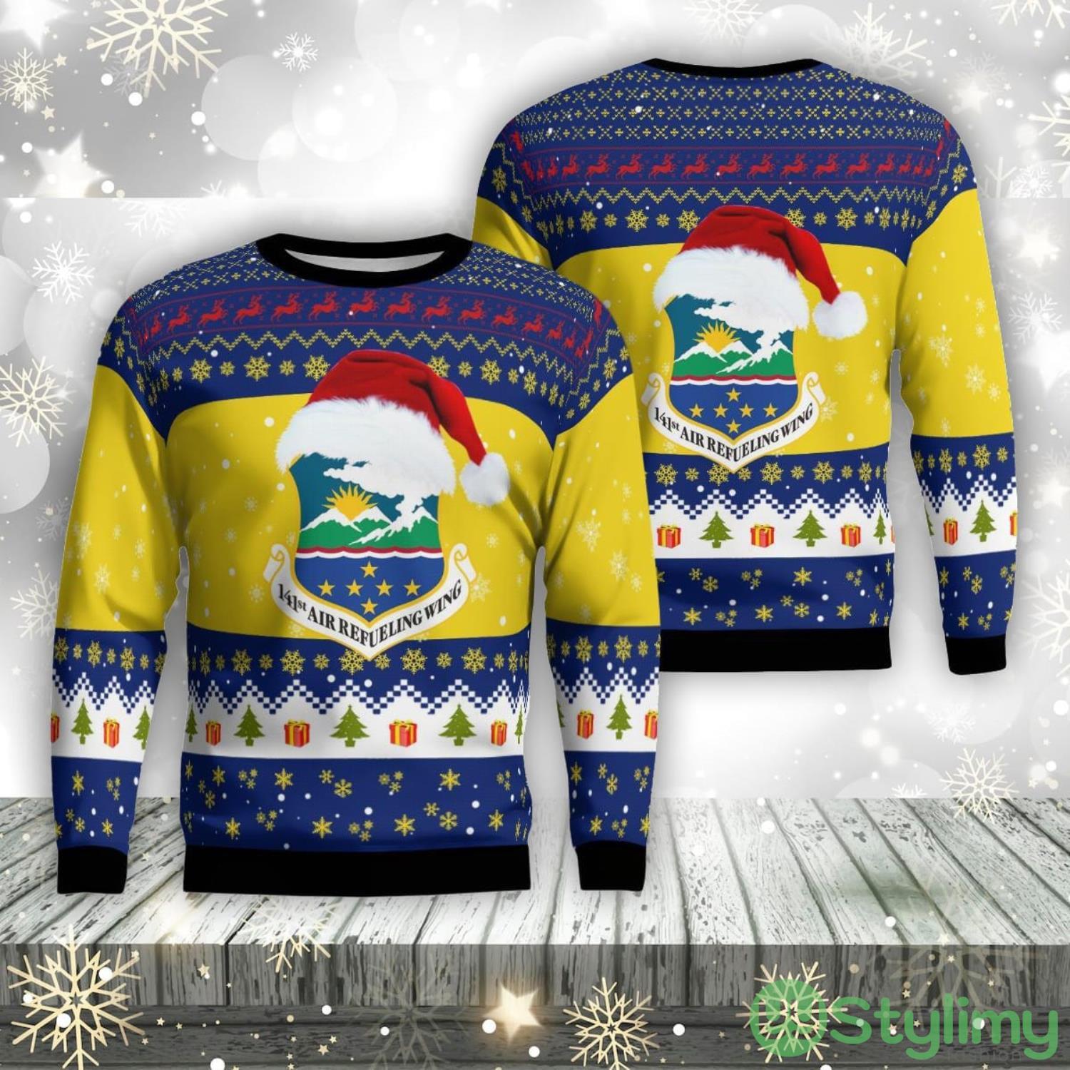 Crafted with utmost attention to detail, this sweater features a unique and colorful design that combines the iconic 141st Air Refueling Wing logo with classic Christmas elements. The result? A truly one-of-a-kind sweater that is sure to turn heads at any holiday gathering.
