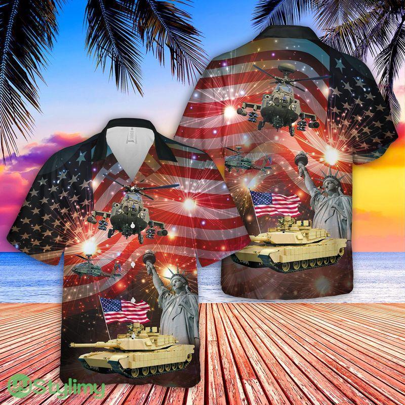 Abrams Battle Tank And Apache 4th Of July Hawaiian Shirt Details: