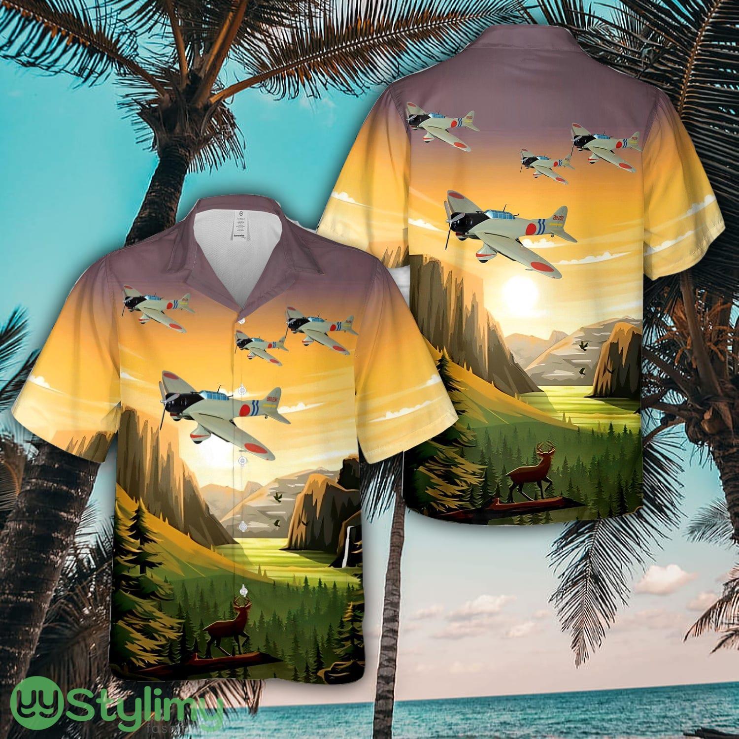 Aichi D3A VAL Japanese WWII dive bomber airplane Aloha Short Sleeve 3D Printed Hawaiian Shirt For Men And Women Details: