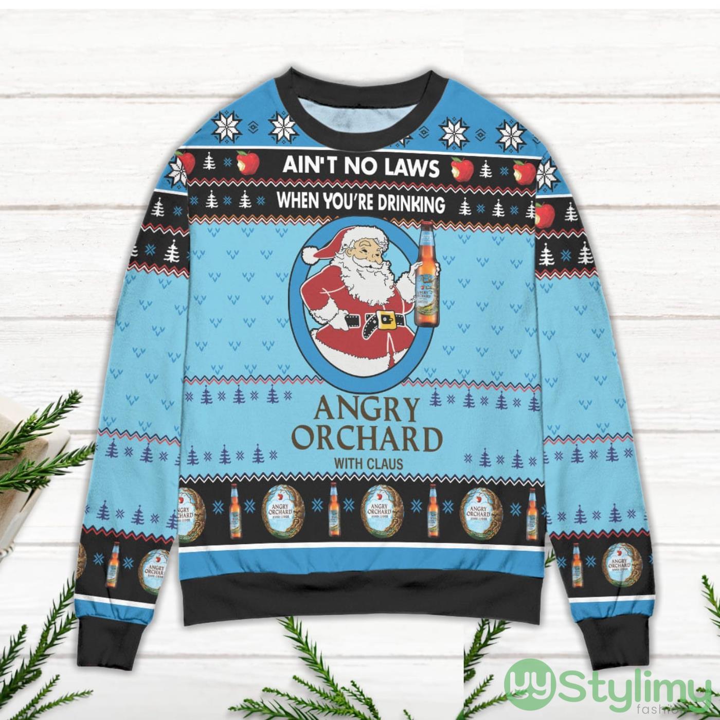 Ain’t No Laws When You’re Drinking Angry Orchard With Claus Ugly Christmas Sweater Product Photo 1