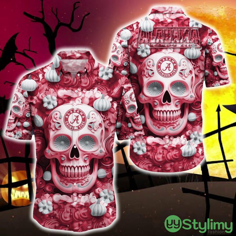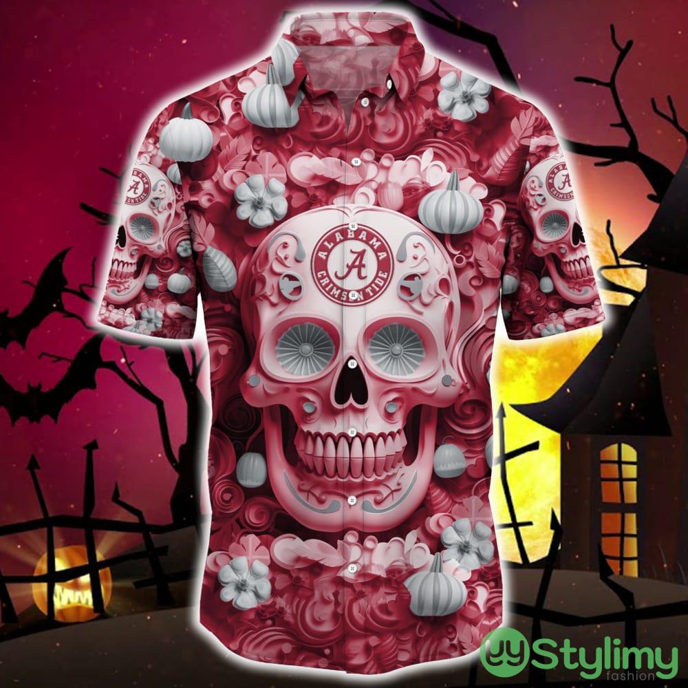 Alabama Crimson Tide Halloween Pumpkin Skull 3D Hawaiian Shirt For Fans Gift Christmas Men And Women – Alabama Crimson Tide Halloween Season Aloha Shirt, New Arrivals_1