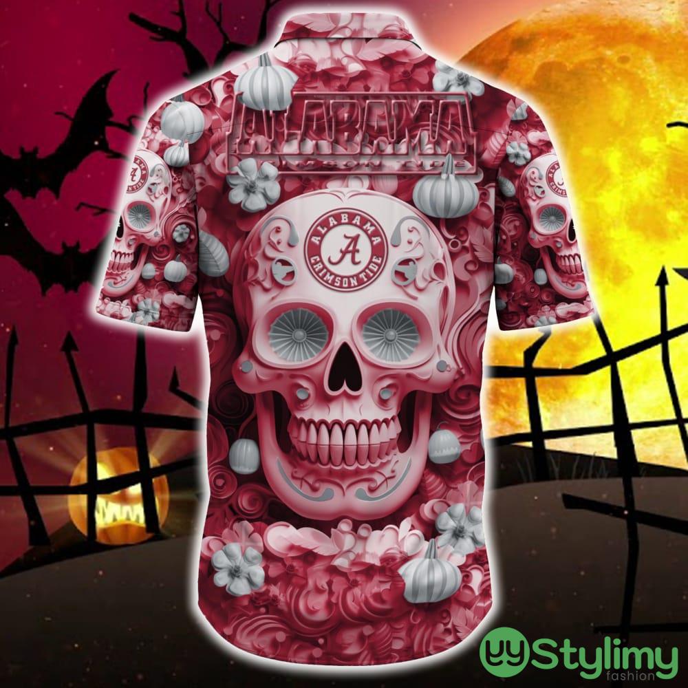 Alabama Crimson Tide Halloween Pumpkin Skull 3D Hawaiian Shirt For Fans Gift Christmas Men And Women Details: