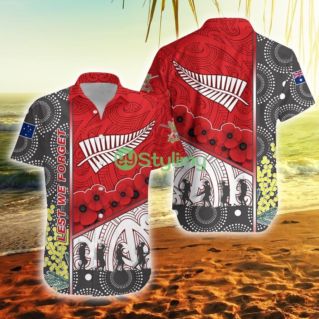 Some of the Anzac Day Lest We Forget Australia Indigenous And New Zealand Maori Red New Zealand Button Down Hawaiian Shirt Trending Summer photos