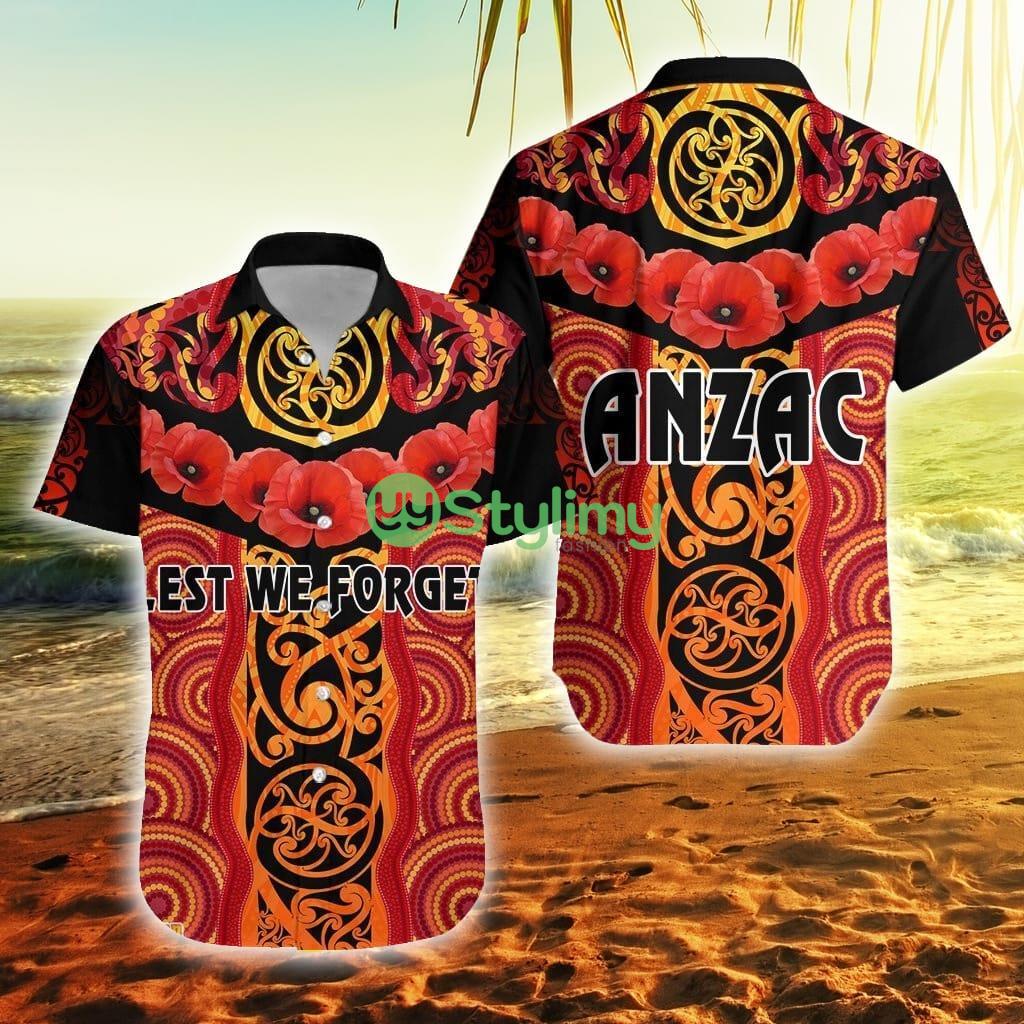 Some of the Anzac Lest We Forget Poppy New Zealand Maori Silver Fern Australia Aboriginal New Zealand Button Down Hawaiian Shirt Trending Summer photos