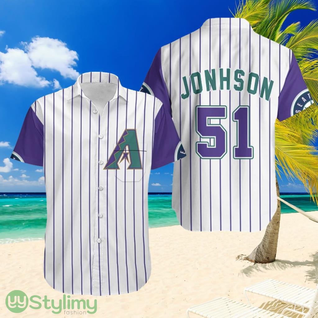 Arizona Diamondbacks Randy Johnson 51 Mlb White Purple Hawaiian Shirt Details: