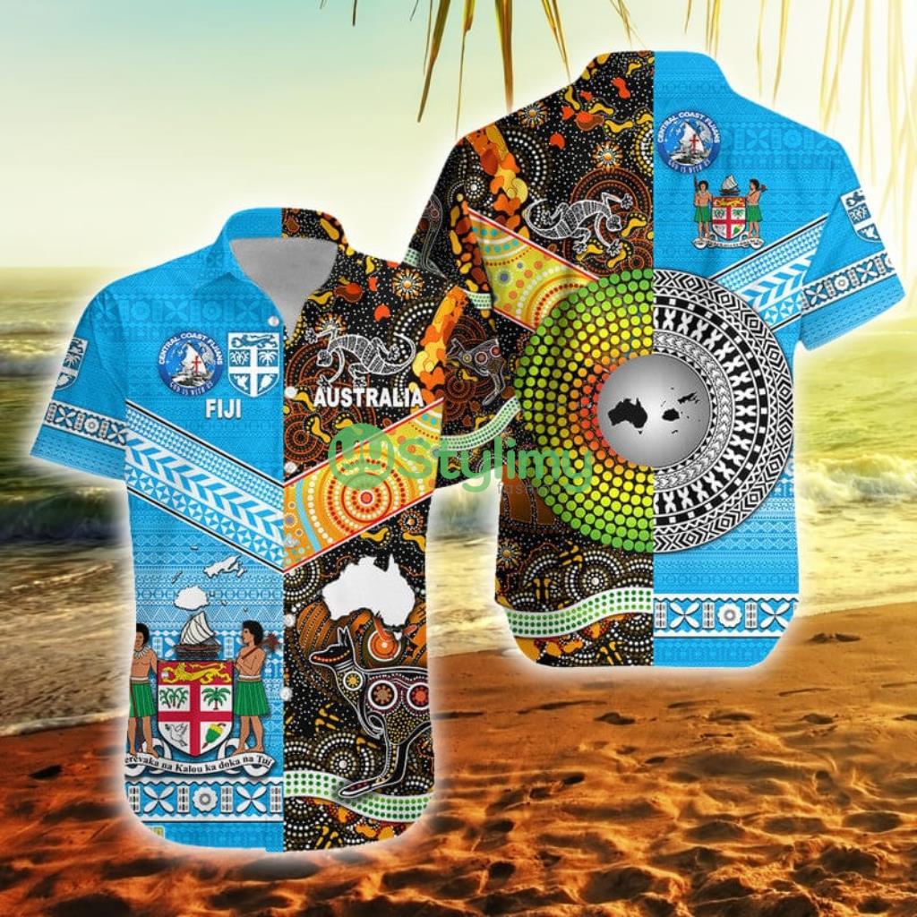 Australia Aboriginal And Fiji Tapa Together Central Coast Fijians Fiji Button Down Hawaiian Shirt Trending Summer Product Photo 1