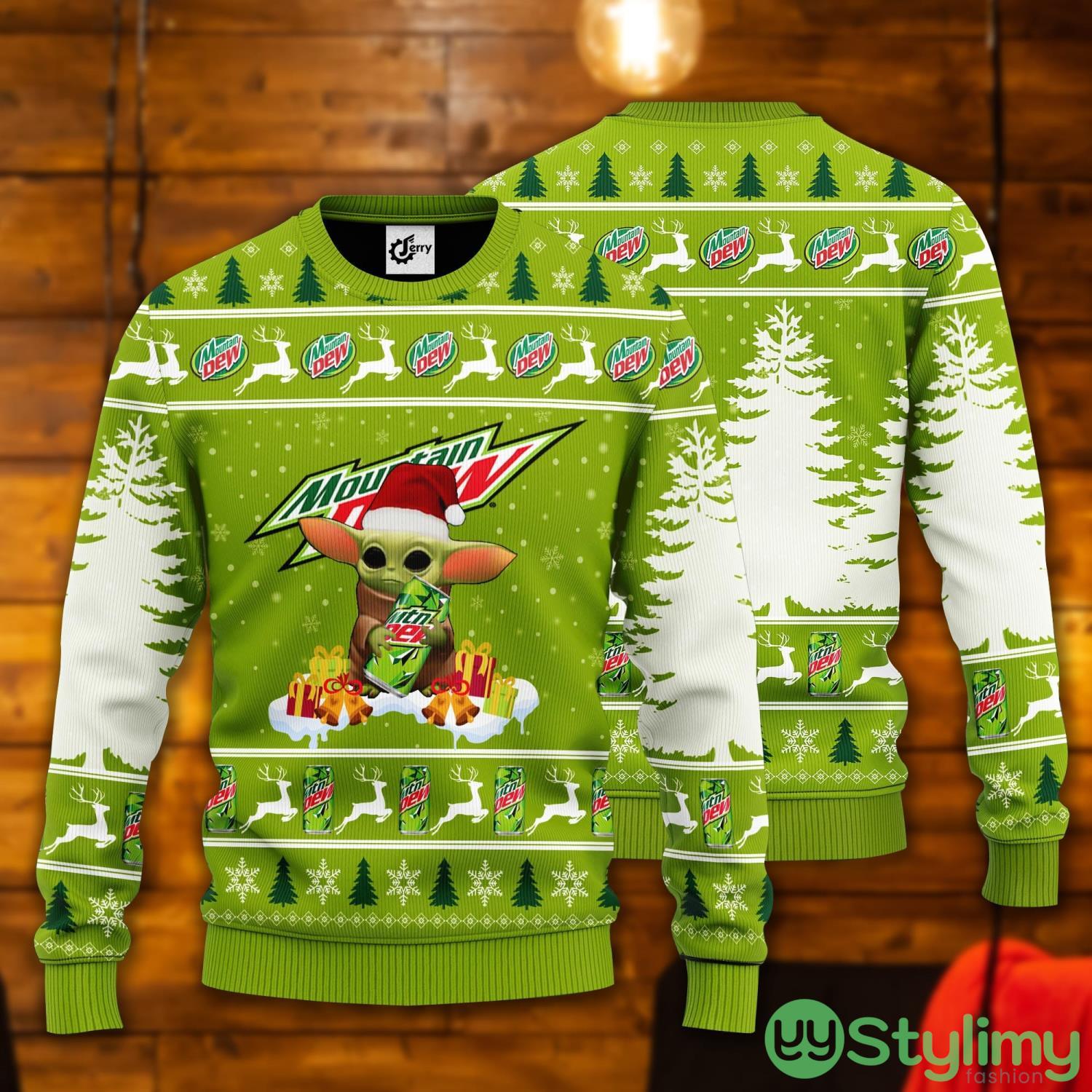 Baby Yoda Hug Mountain Dew Ugly Christmas Sweater Product Photo 1
