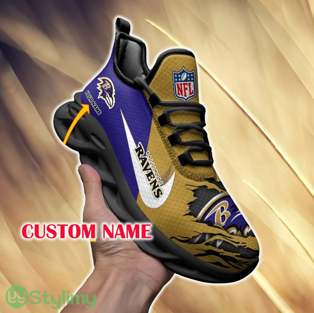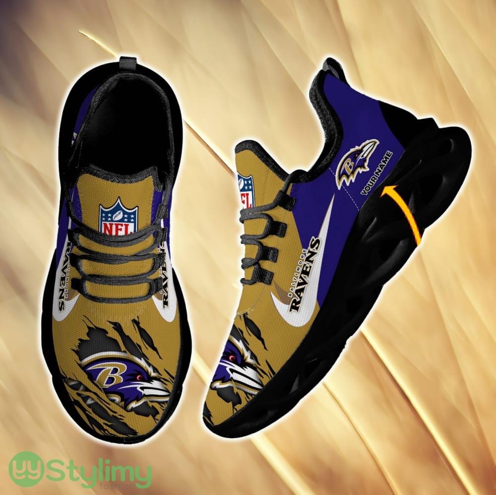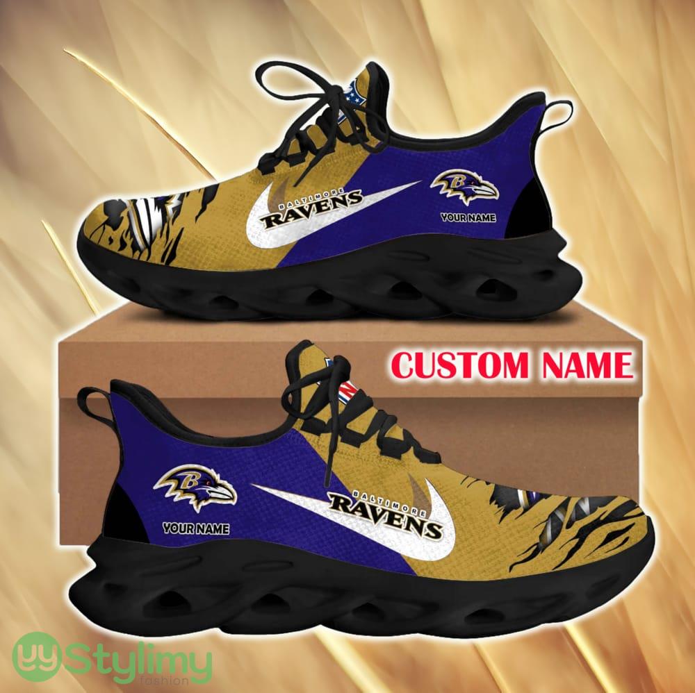 Don’t miss out on this new gift for Ravens enthusiasts! Grab your Baltimore Ravens Explore For Fans Custom Name Max Soul Sneakers today and step into the world of ultimate team spirit and style.