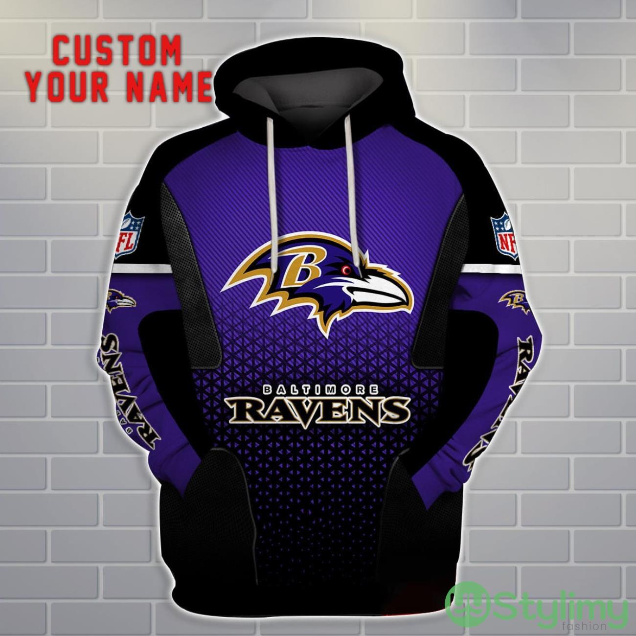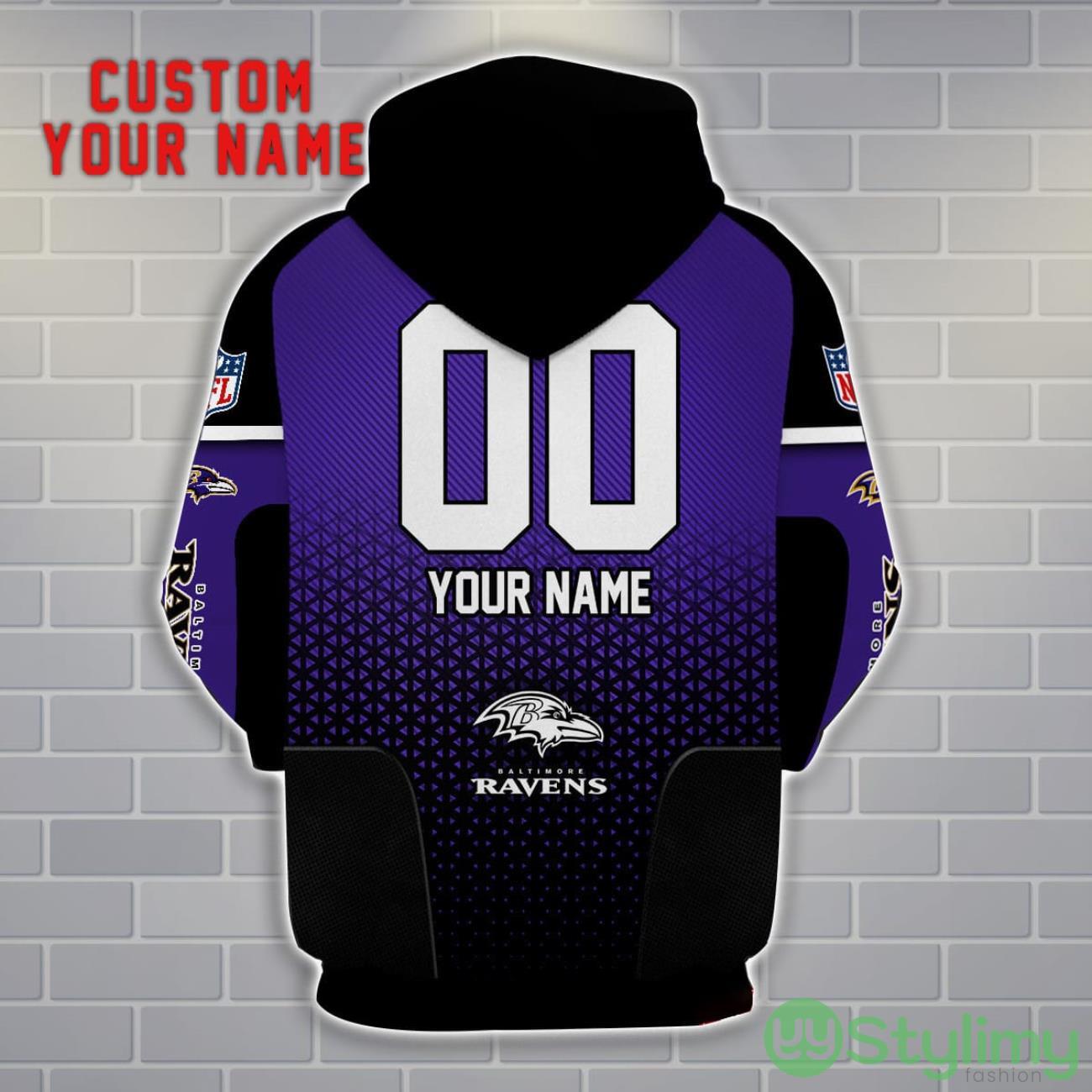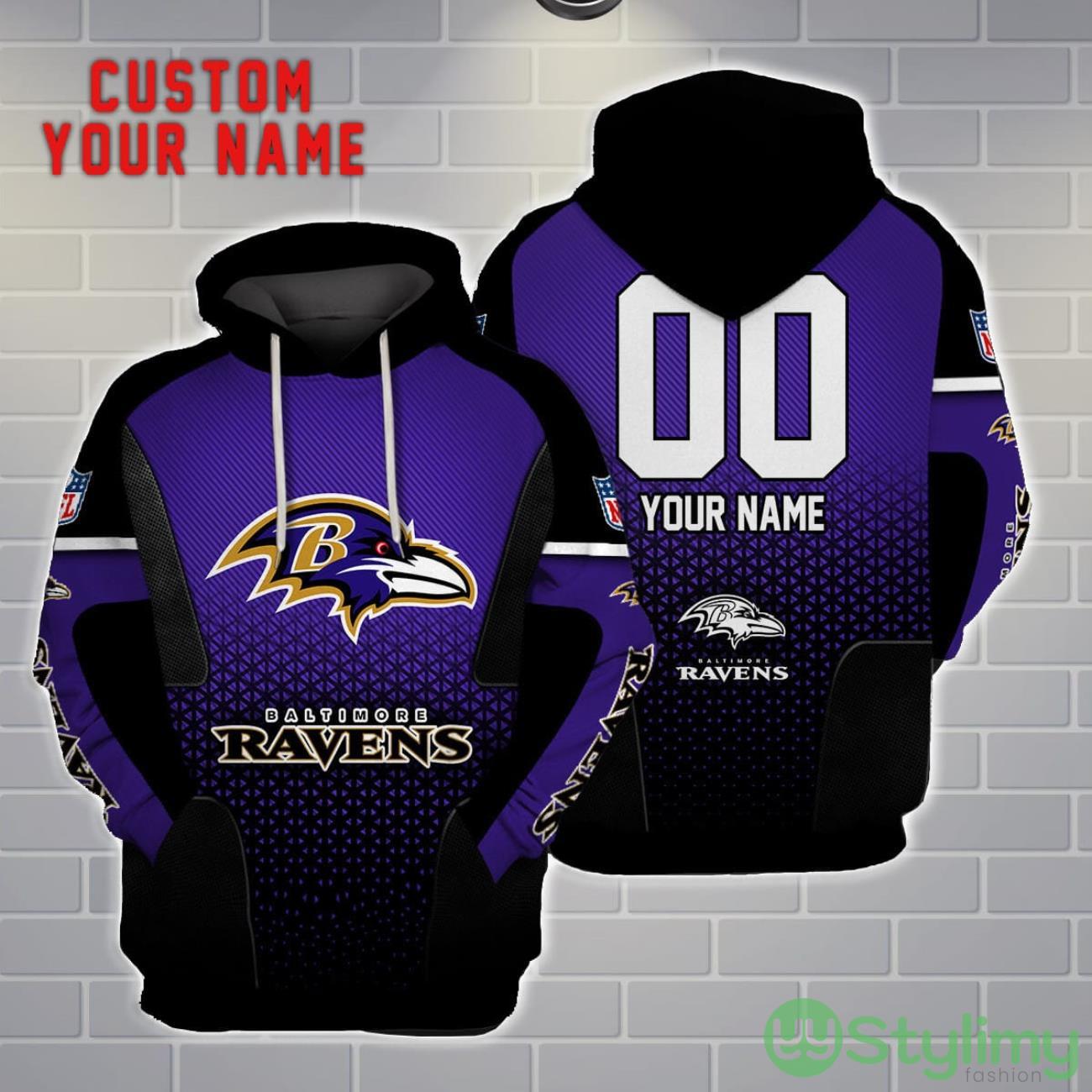 Perfect design for holiday. Get yours this shirt or this is a cute item for your daddy, gift for your mom, and gift for friends on any occasion. buy a cute Baltimore Ravens Personalized Name And Number 3D Hoodie Unisex now.