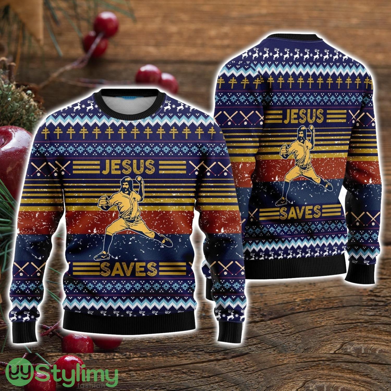 Whether you’re attending an ugly sweater party, spreading holiday cheer at a family gathering, or simply want to show off your love for both baseball and Christmas, our Baseball Funny Jesus Save Ugly Christmas Sweater is the ultimate choice. It’s a unique and unforgettable gift that will bring smiles and laughter to everyone around you.