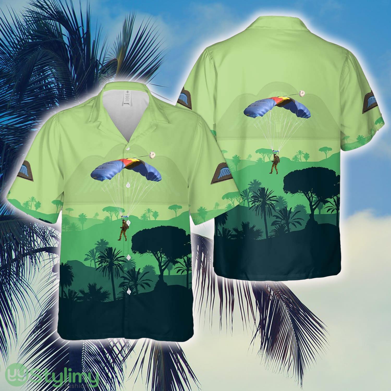 Some of the Belgian Army paratroopers with 1st Battalion of Para Commando jumping on Chièvres Air Base Hawaiian Shirt photos