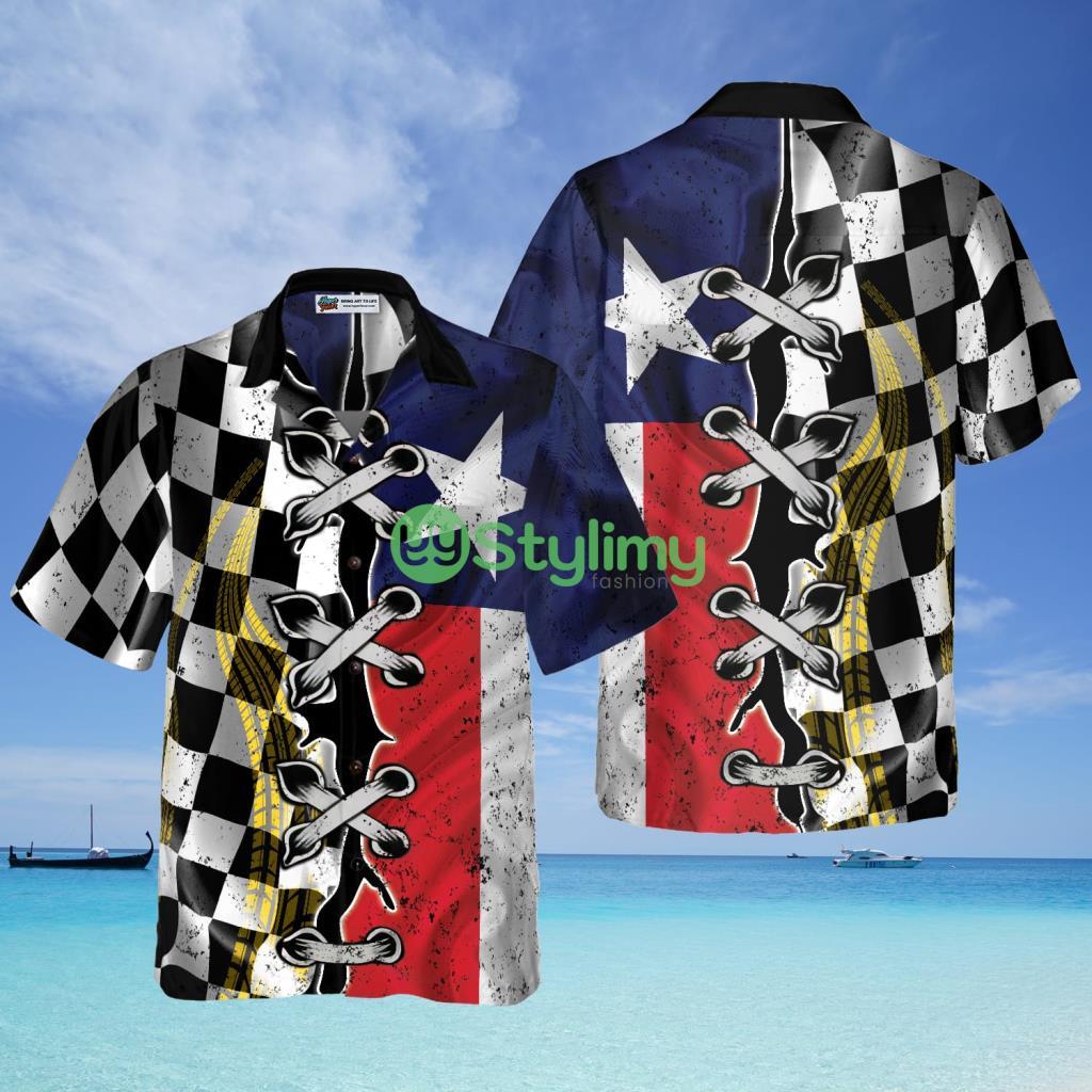 Black And White Texas Racing Flag Hawaiian Shirt Details: