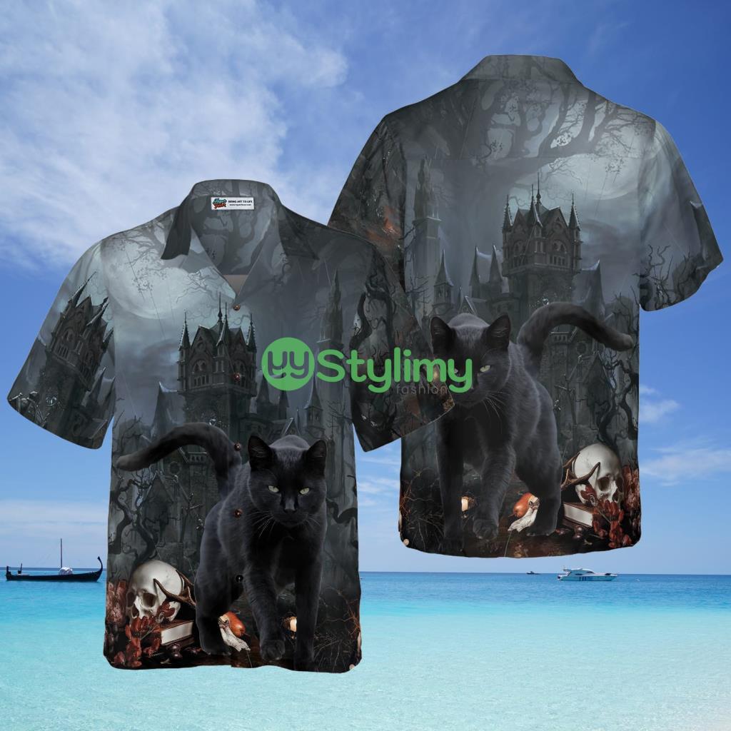 Black Cat In Spooky Halloween Hawaiian Shirt – Black Cat In Spooky Halloween Hawaiian Shirt