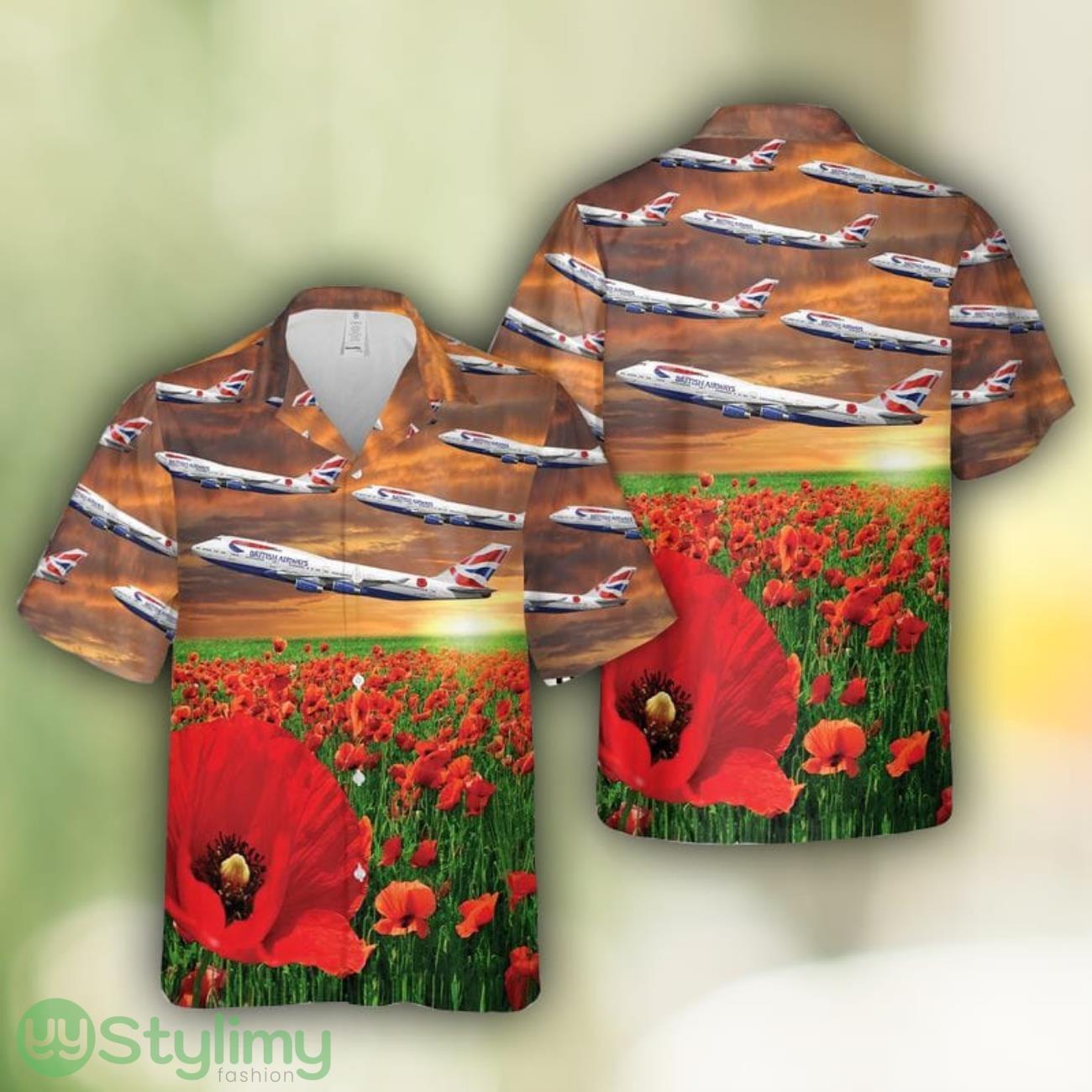 British Airways Poppy Tribute Boeing 747-436 G-BNLN Men And Women Hawaiian Shirt Product Photo 1