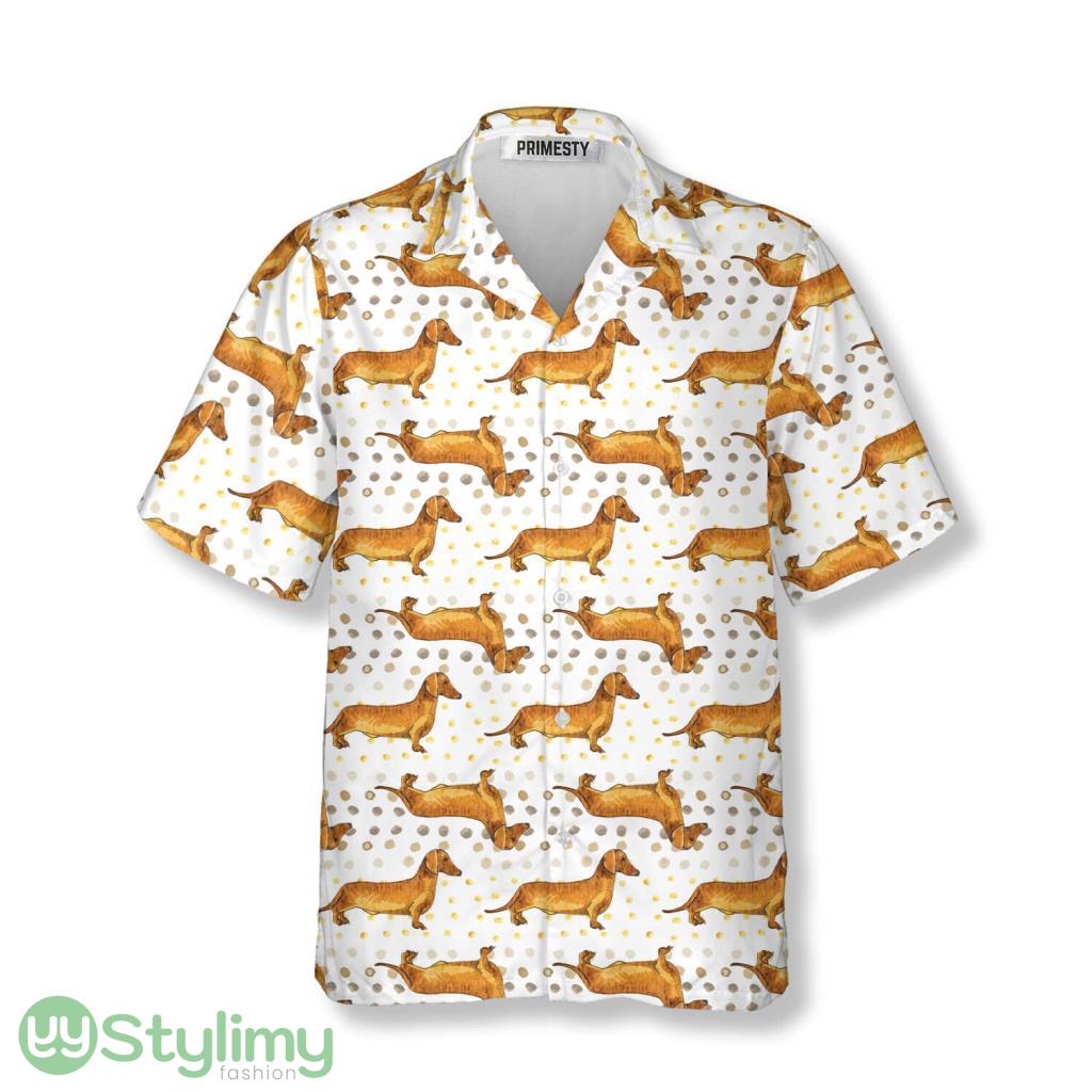 Brown Dachshund Poses With Dots Dachshund Hawaiian Shirt Product Photo 1