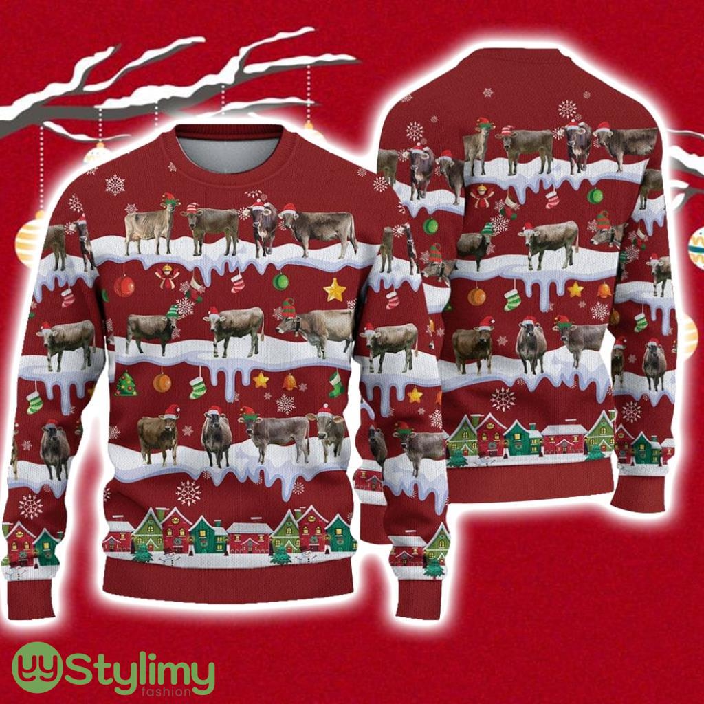 Made from high-quality materials, this cozy sweater is as comfortable as it is stylish. The soft fabric ensures a snug fit, keeping you warm during those chilly winter nights. The intricate knitting displays adorable Brown Swiss cows dressed in vibrant Christmas attire, adding a touch of whimsy and charm to your festive ensemble.