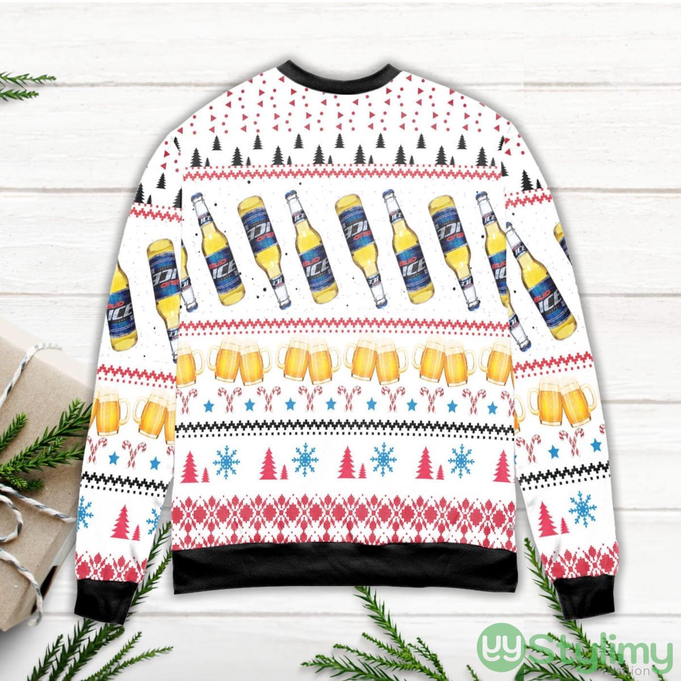 Bud Ice Snowflake And Pine Tree Pattern Ugly Christmas Sweater Product Photo 2