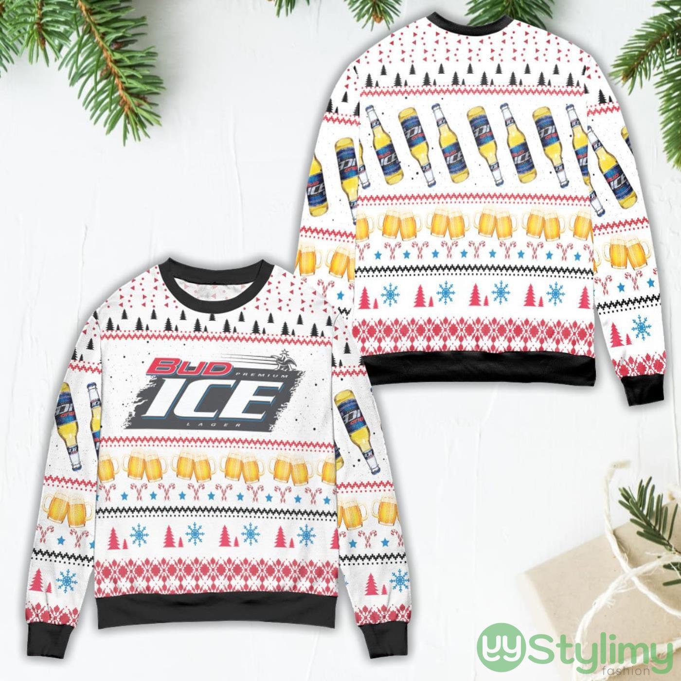 Bud Ice Snowflake And Pine Tree Pattern Ugly Christmas Sweater Informations: