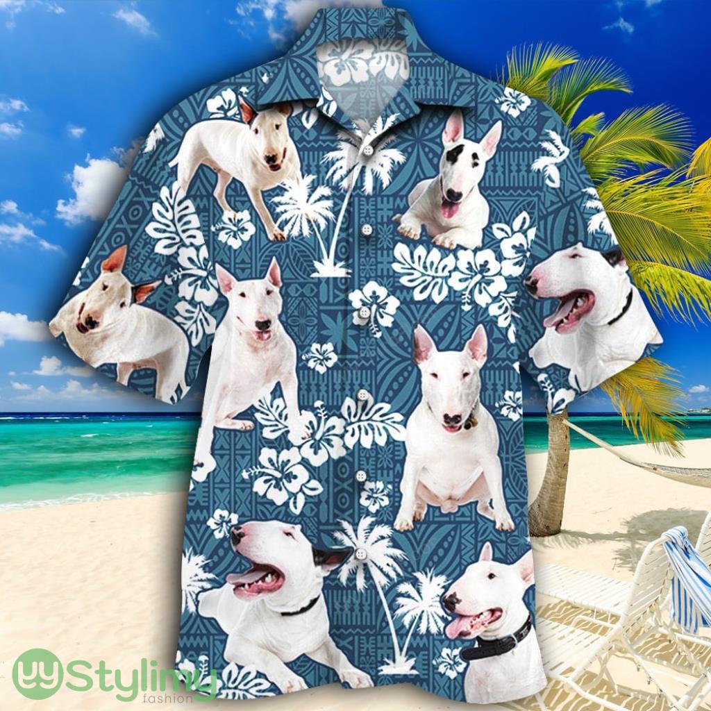 Some of the Bull Terrier Dog Blue Tribal Pattern Tropical Hawaiian Shirt photos