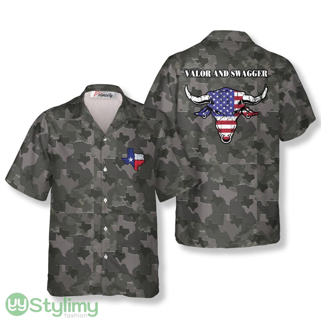 Camo US FLag Texas Hawaiian Shirts Product Photo 1