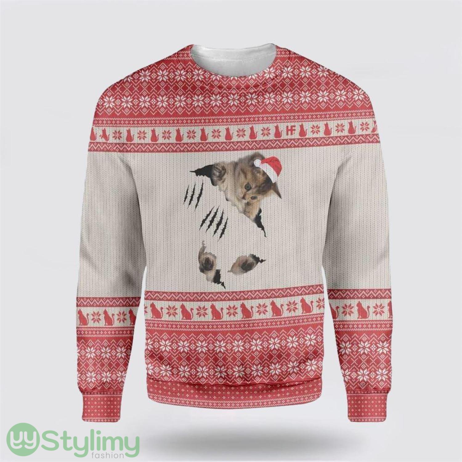 Cat Scratch Ugly Christmas Sweater Cat Lover Christmas Sweater Holiday Gift Product Photo 1