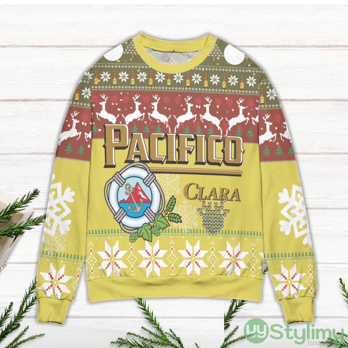Cerveza Pacifico Clara Snowflake & Reindeer Pattern Ugly Christmas Sweater Informations: