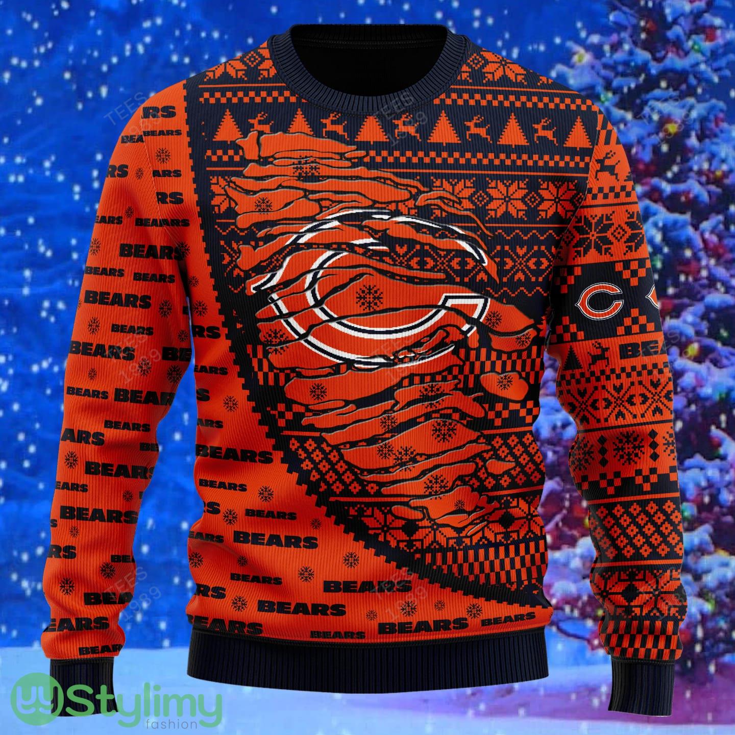 Crafted with meticulous attention to detail, our sweater features a unique 3D design, showcasing the iconic Chicago Bears logo surrounded by whimsical snowflakes and adorable reindeer. The vibrant colors and intricate patterns make this sweater a true standout, perfect for any holiday gathering or game day.