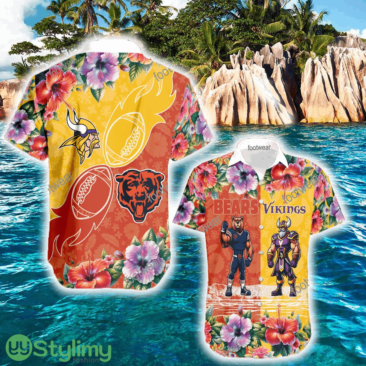Chicago Bears VS Minnesota Vikings Beach Logo 3D Hawaiian Shirt Men And Women Gift Details: