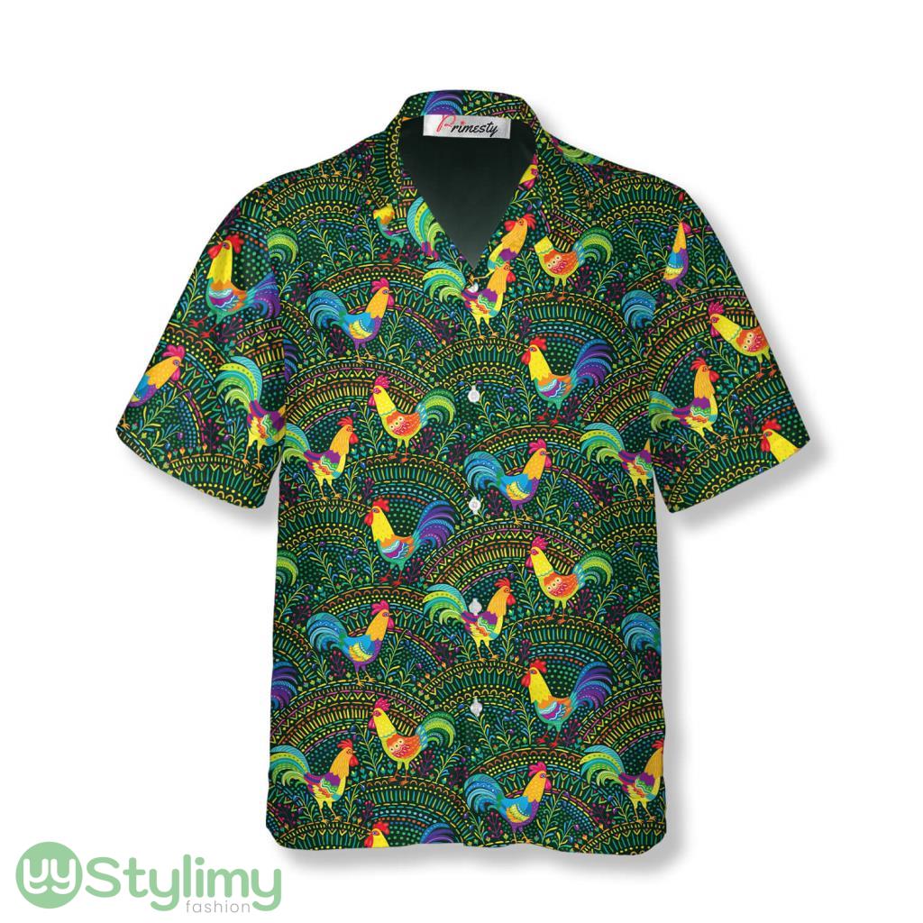 Chicken Rooster Floral Ornament Green Background Chicken Shirts Chicken Hawaiian Shirt Details: