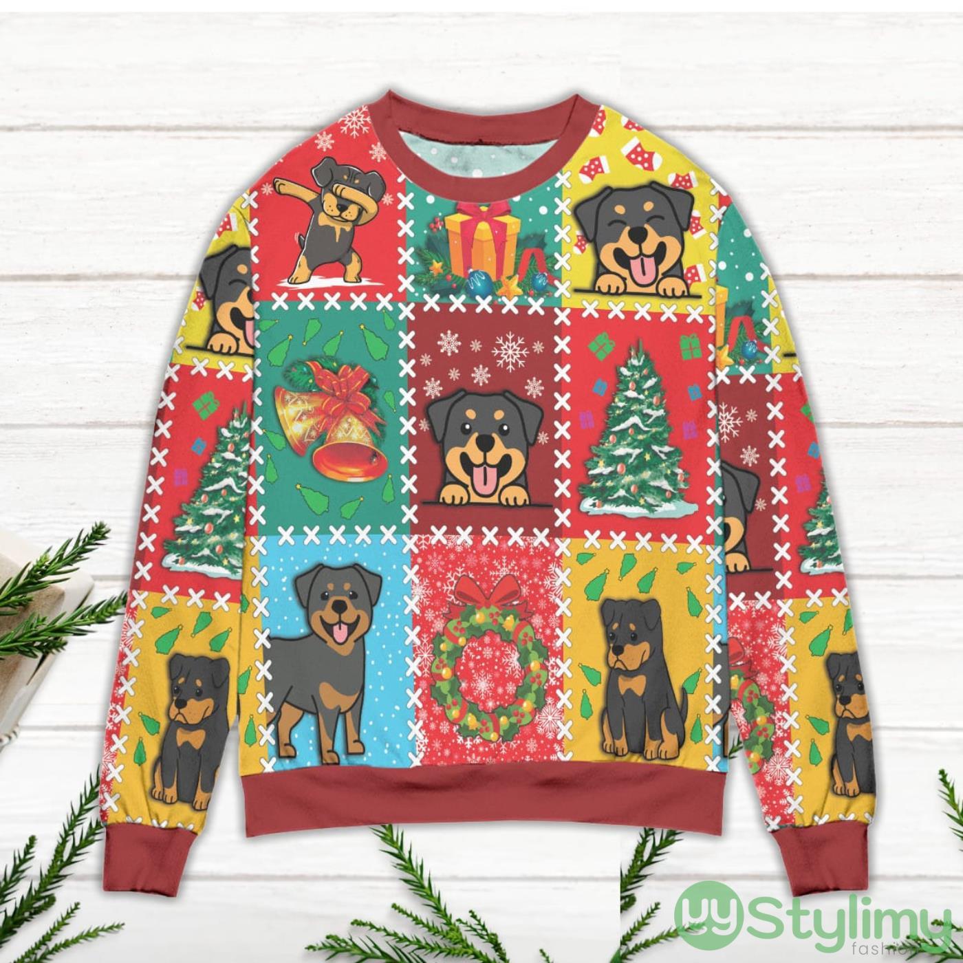 Christmas Vacation With Rottweiler Snowflake Ugly Christmas Sweater Product Photo 1