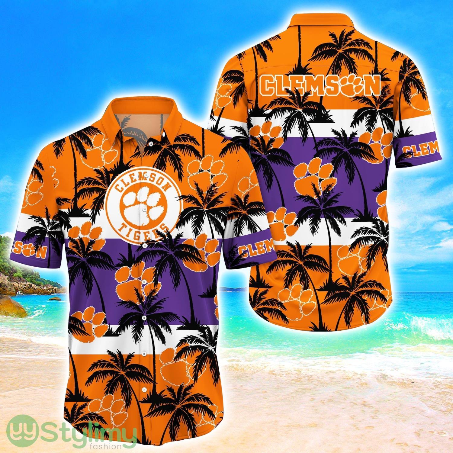Clemson Tigers Tropical Palm Tree Trending Summer Aloha Hawaiian Shirt Details: