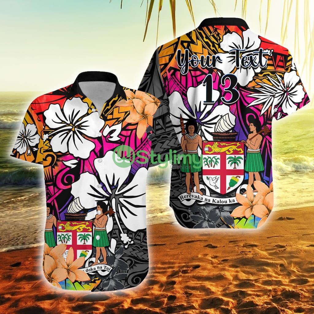 Custom Name And Number Fiji Tie Dye Polynesian Tribal Creative Tropical Flowers Fiji Button Down Hawaiian Shirt Trending Summer Details: