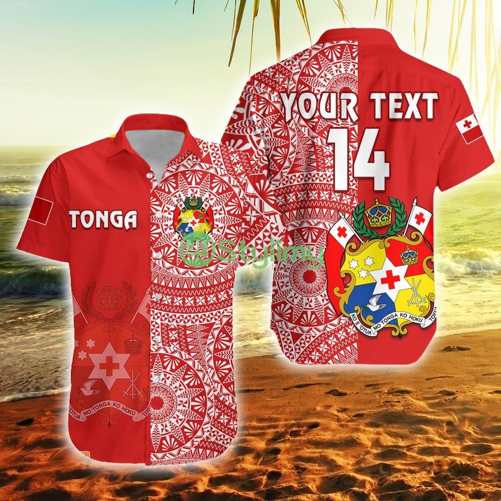 Custom Name And Number Tonga Tongan Coat Of Arms Ngatu Pattern Tonga Button Down Hawaiian Shirt Trending Summer Product Photo 1