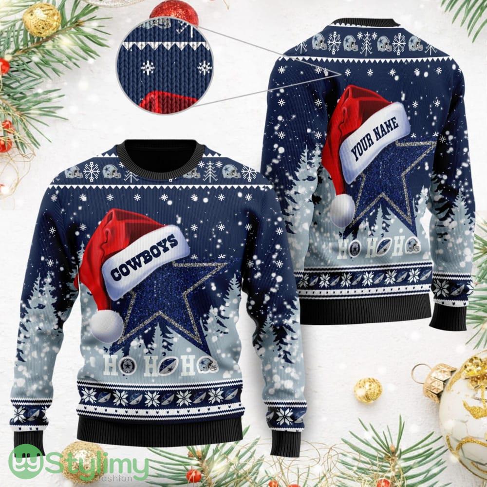 Custom Name Dallas Cowboys Symbol Wearing Santa Claus Hat Ho Ho Ho All Over Print Sweater Gift Christmas Informations: