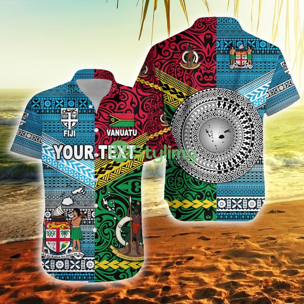 Custom Vanuatu Fiji T Shirt Together Bright Color, Custom Text And Number Vanuatu Button Down Hawaiian Shirt Trending Summer Details: