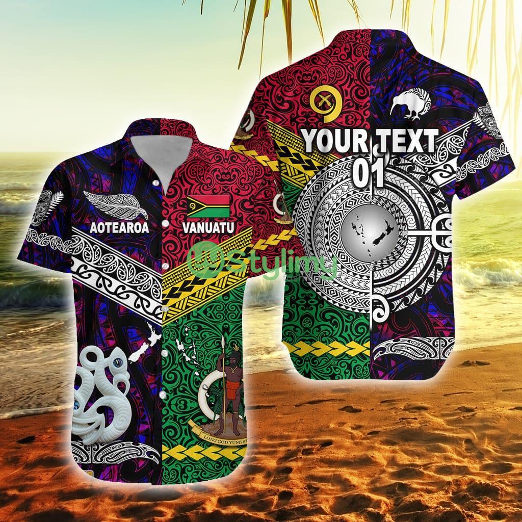 Custom Vanuatu New Zealand Polo Shirt Together Purple, Custom Text And Number Vanuatu Button Down Hawaiian Shirt Trending Summer Details: