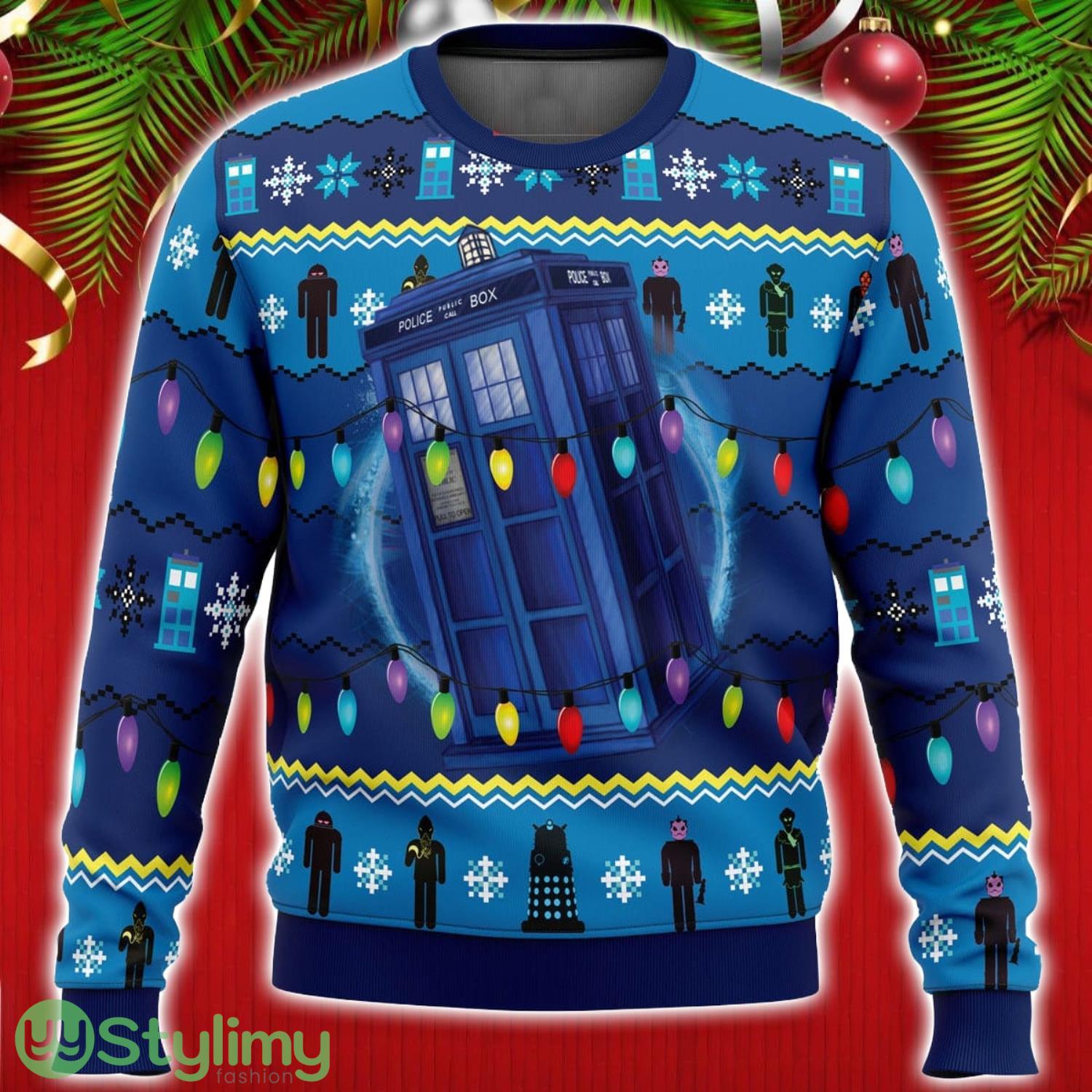 Cute Xmas Ugly Sweater WHO’S Outside Doctor Who Ugly Christmas Sweater Unisex Christmas Gift Product Photo 1