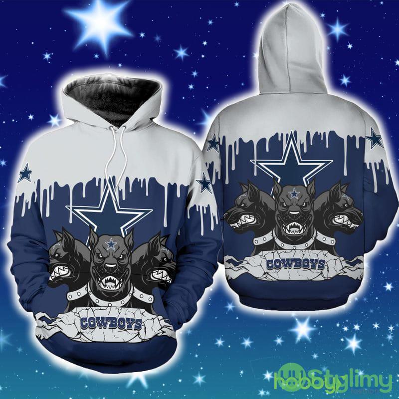 Perfect design for holiday. Get yours this shirt or this is a cute item for your daddy, gift for your mom, and gift for friends on any occasion. buy a cute Dallas Cowboys 3 Heads Cerberus Hoodie Zip Hoodie Christmas Fans All Over Printed Gift For Men And Women now.