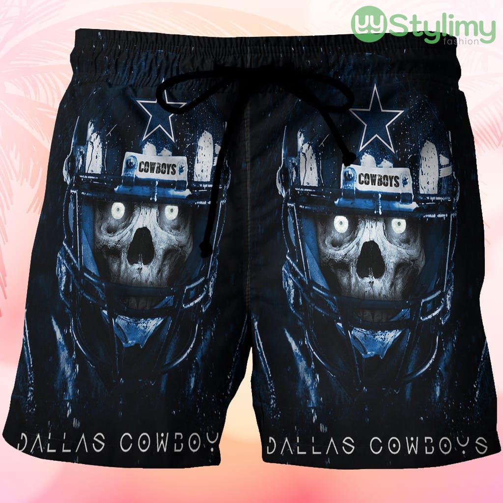 Dallas Cowboys Skull Wearing Helmet Beach Hawaiian Shorts For Men Trending Summer Product Photo 1