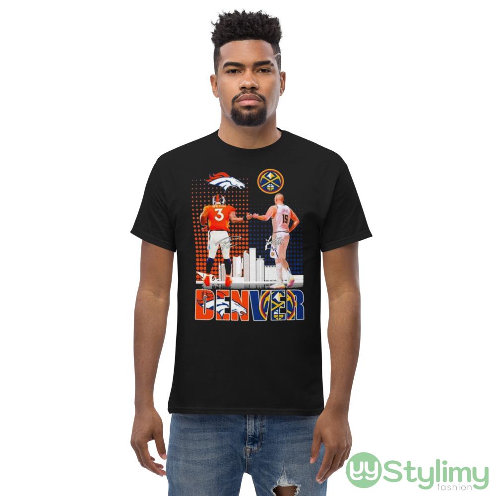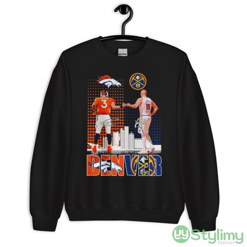 Some of the Denver city skyline Russell Wilson vs Nikola Jokic signatures new Shirt photos