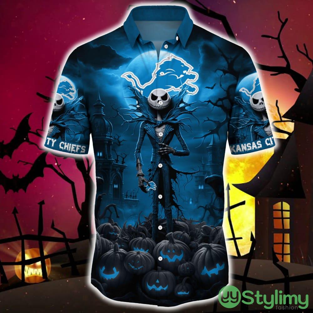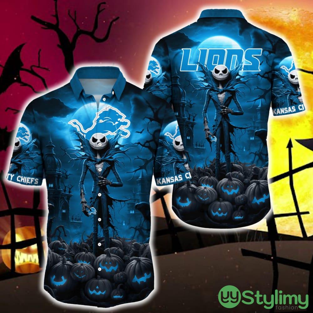 Detroit Lions Halloween Jack Skellington 3D Hawaiian Shirt For Fans Gift Christmas Men And Women Details:
