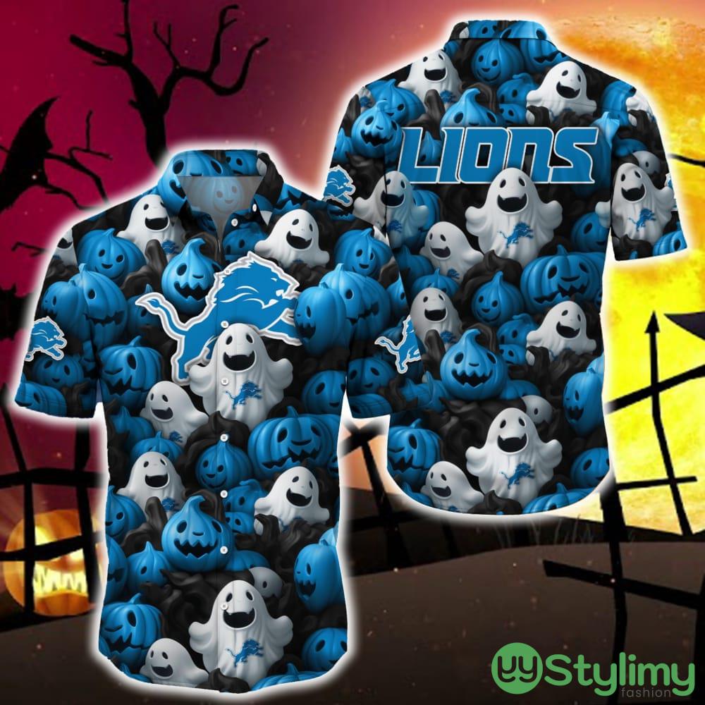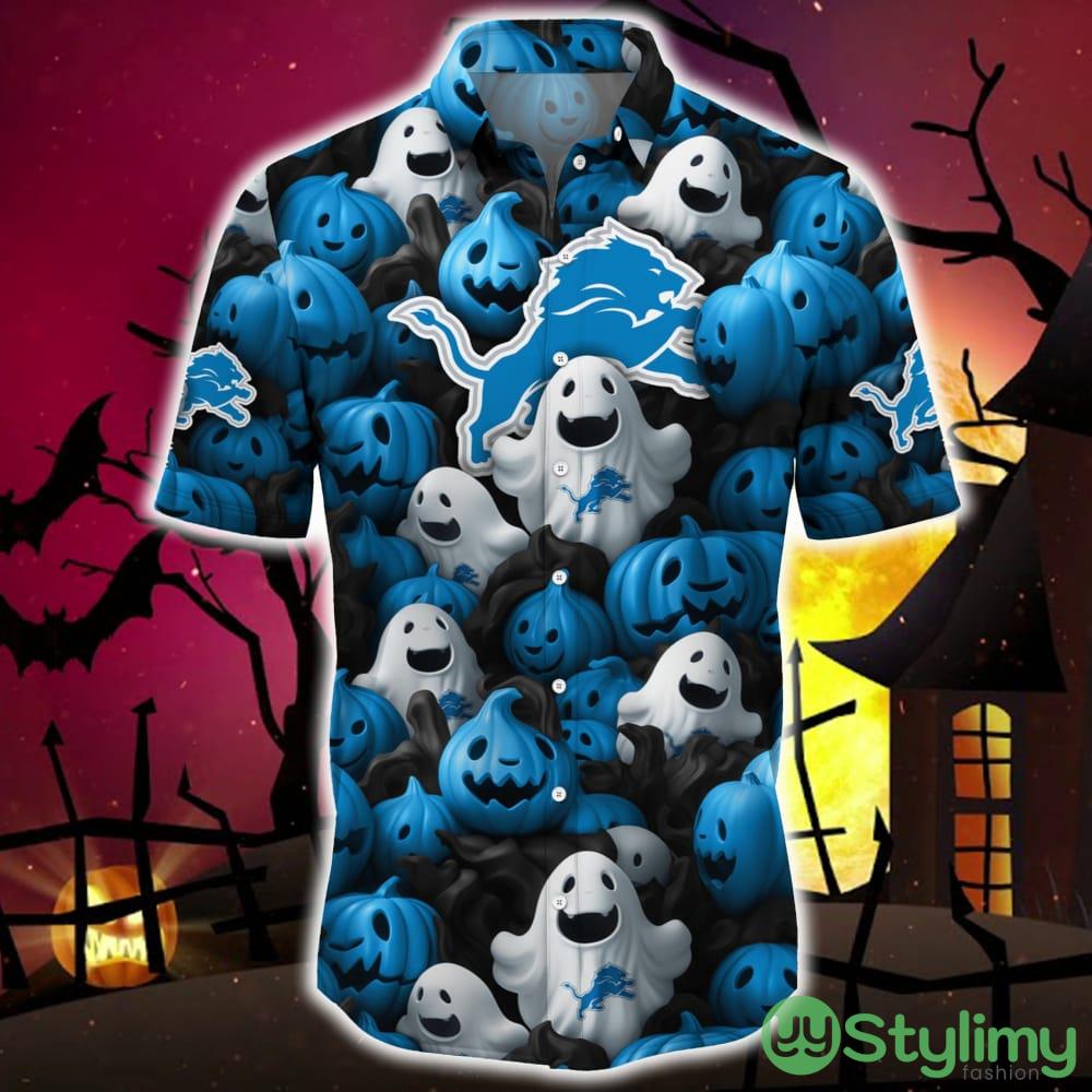 Detroit Lions Halloween Pumpkin Skull 3D Hawaiian Shirt For Fans Gift Christmas Details: