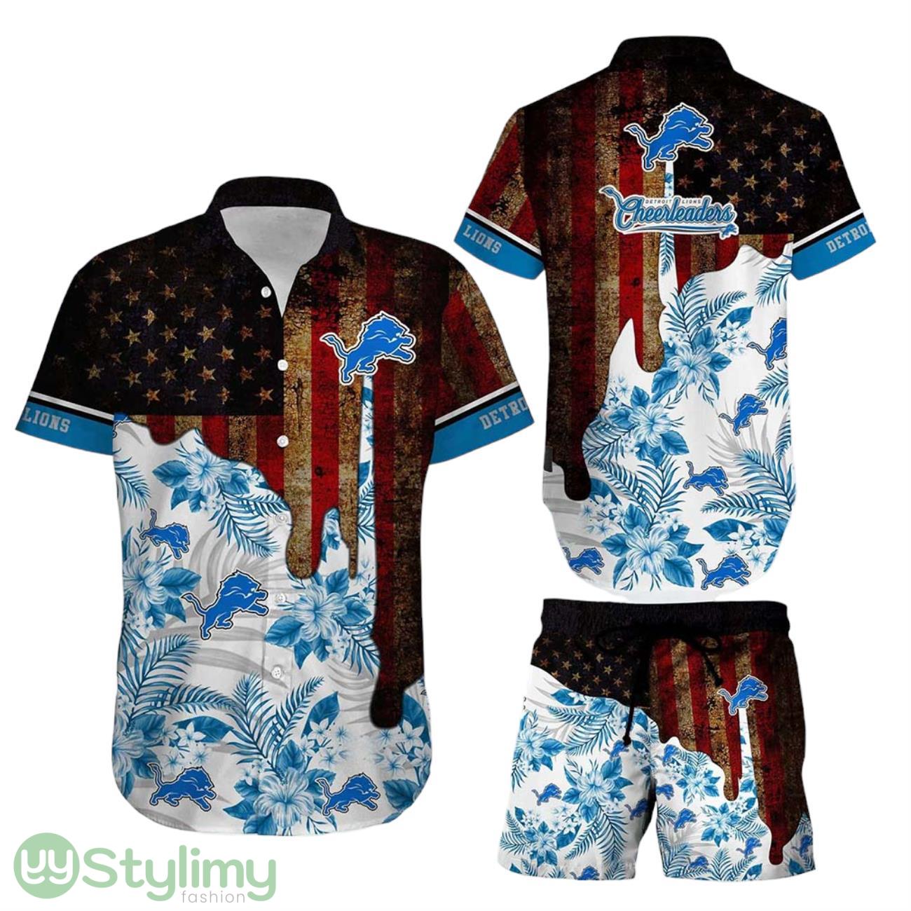 Detroit Lions NFL 3D Print Hawaiian Shirt And Shorts Summer Vintage US Flag Best Gift For Men Women Product Photo 1