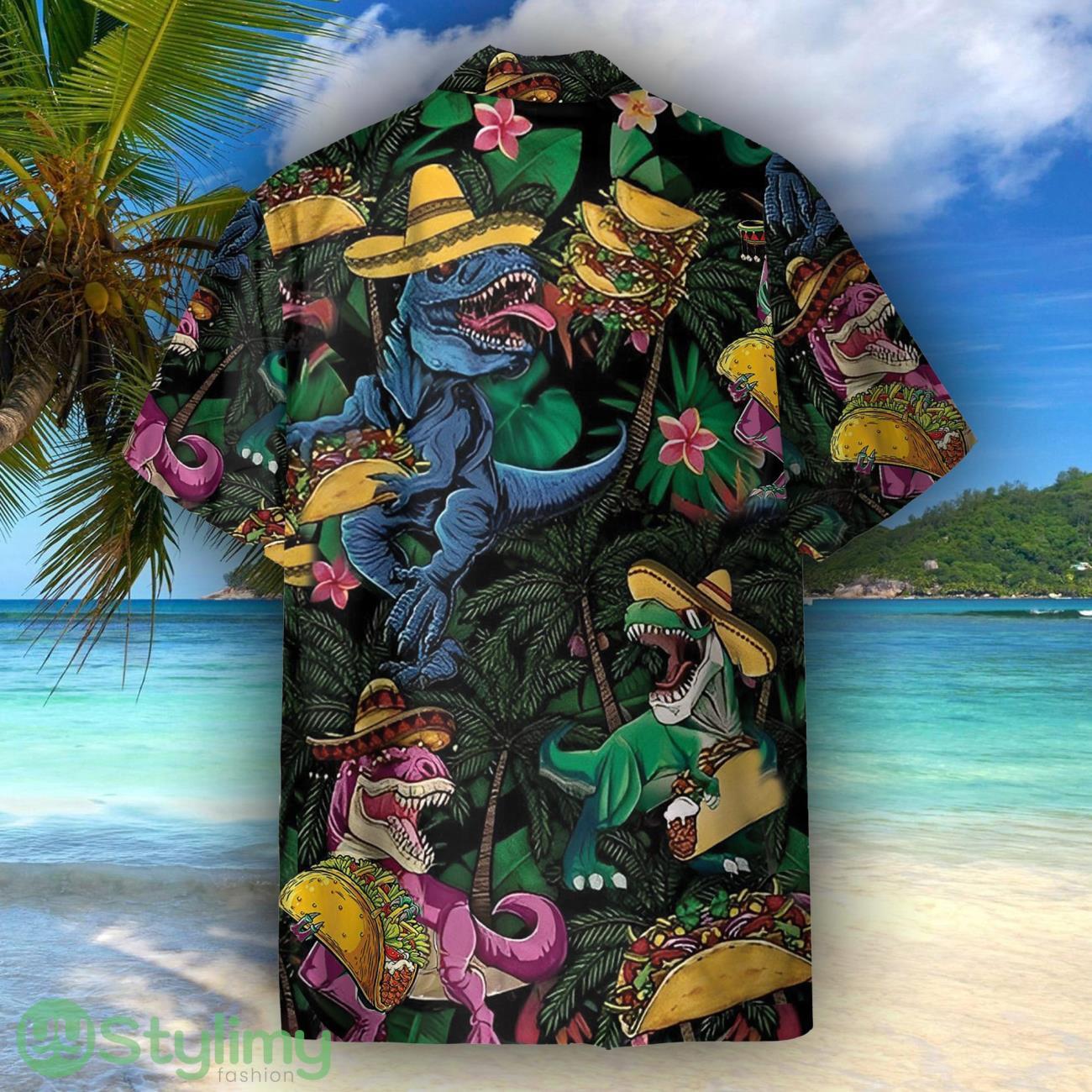 Dinosaur Love Tacos Coconut Tree Pattern Hawaiian Shirt For Men Women Product Photo 2