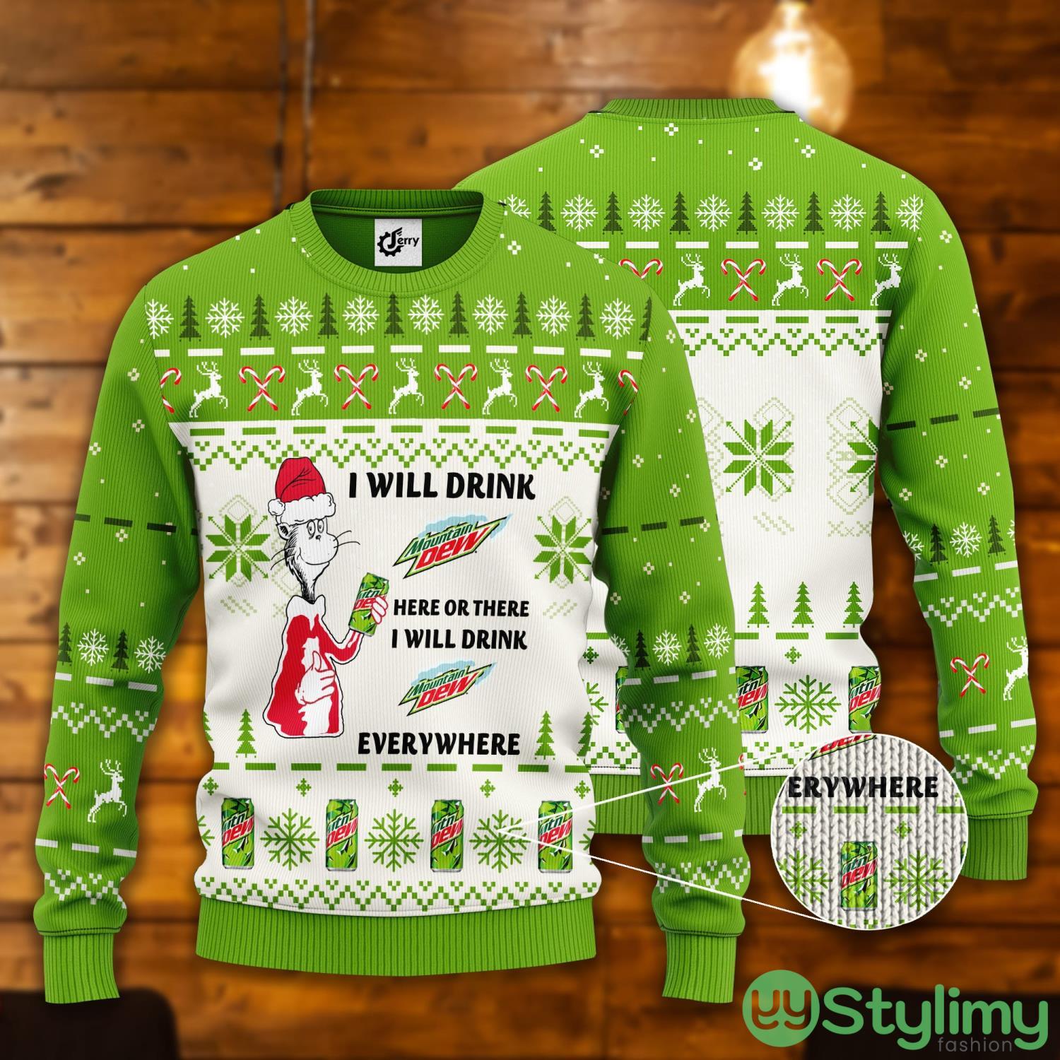 Dr. Seuss I Will Drink Mountain Dew Here Or There Ugly Christmas Sweater Informations: