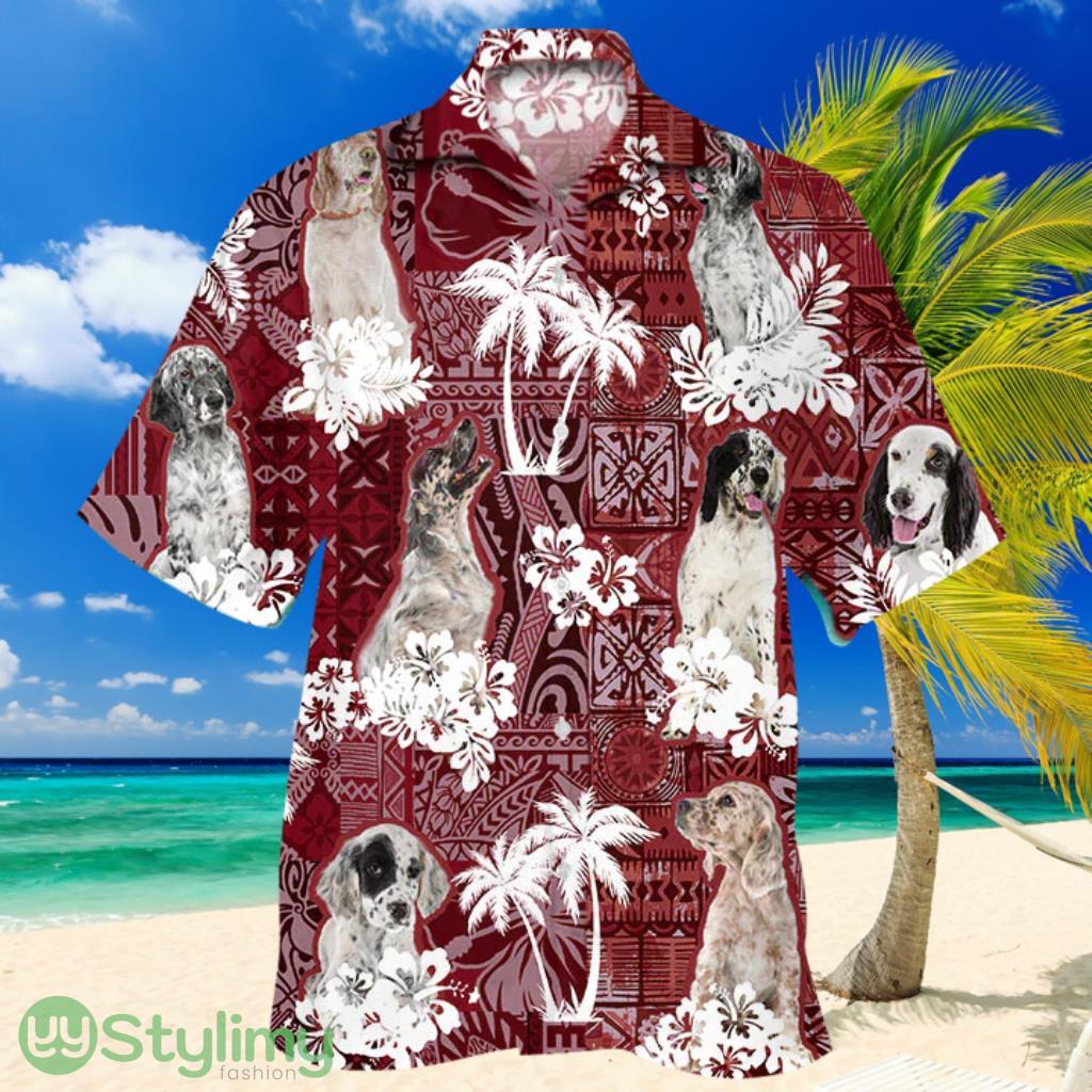 Featuring an adorable English Setter design, this shirt is a true statement piece. The combination of the striking red color and the fun Hawaiian print creates a unique and trendy look that is sure to make you stand out from the crowd. Whether you’re headed to a casual outing, a beach party, or simply want to express your love for dogs in style, this shirt is a must-have.