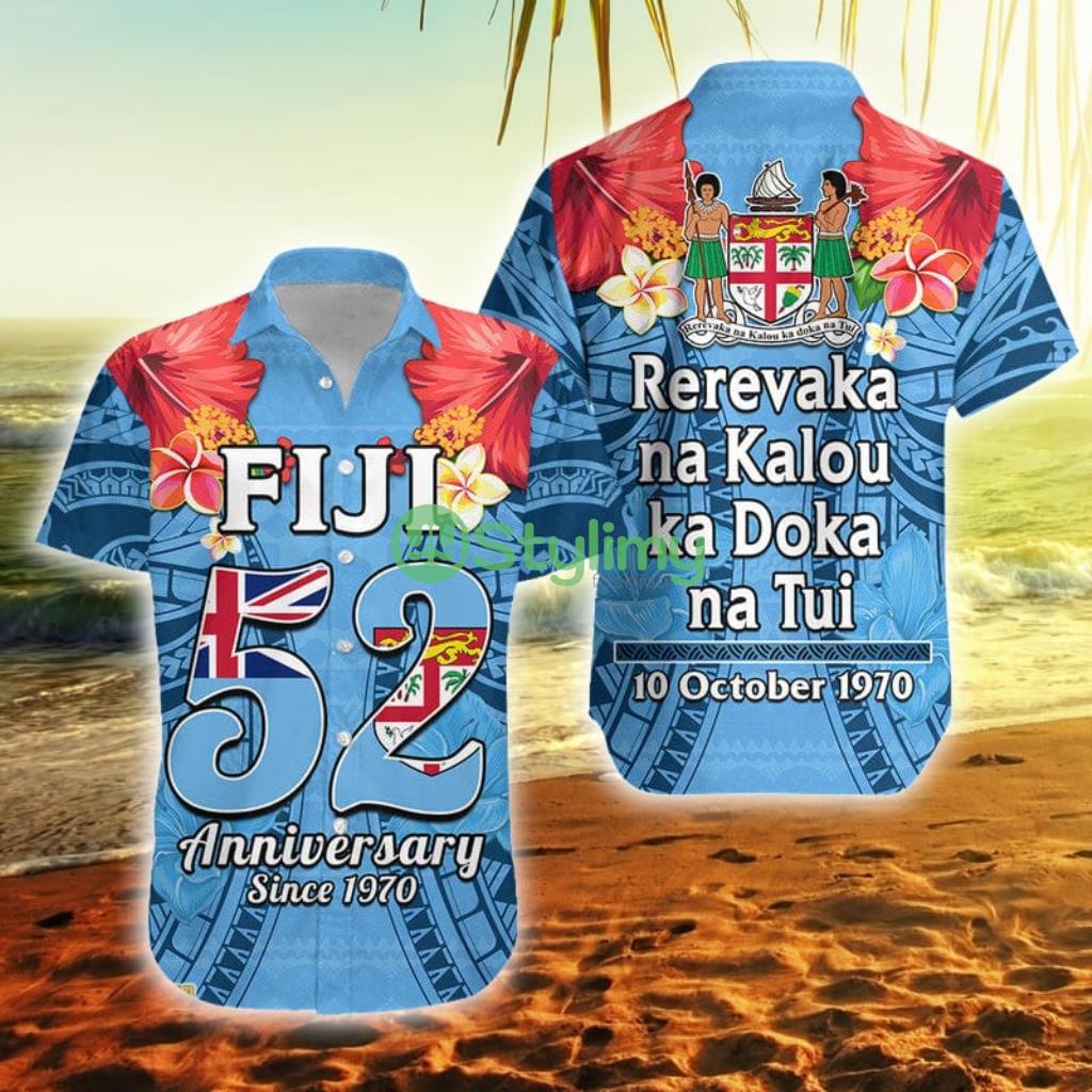 Fiji 1970 Happy 52 Years Independence Anniversary Fiji Button Down Hawaiian Shirt Trending Summer Product Photo 1