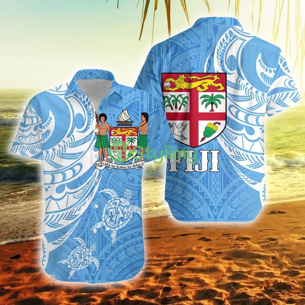 Fiji Coat Of Arms Turquoise Color Fiji Button Down Hawaiian Shirt Trending Summer Details: