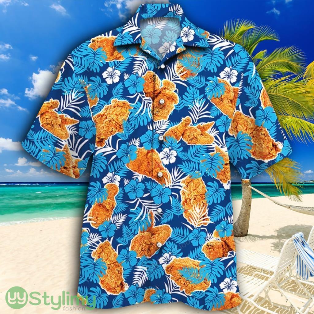 Fried Chicken Lovers Blue Floral Tropical Hawaiian Shirt Details: