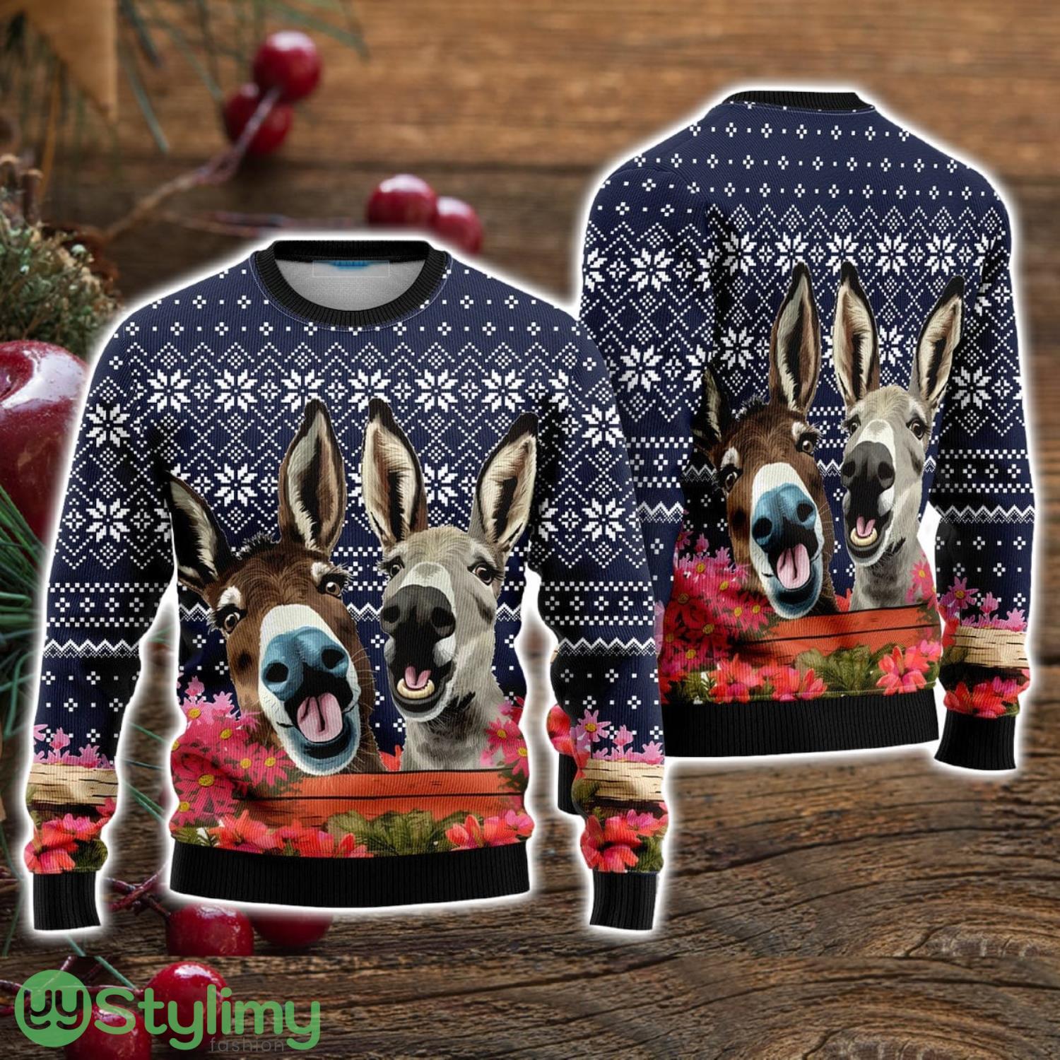Funny Donkey Buddies Blue Red Ugly Christmas Sweater Christmas Holiday Gift For Men And Women Product Photo 1